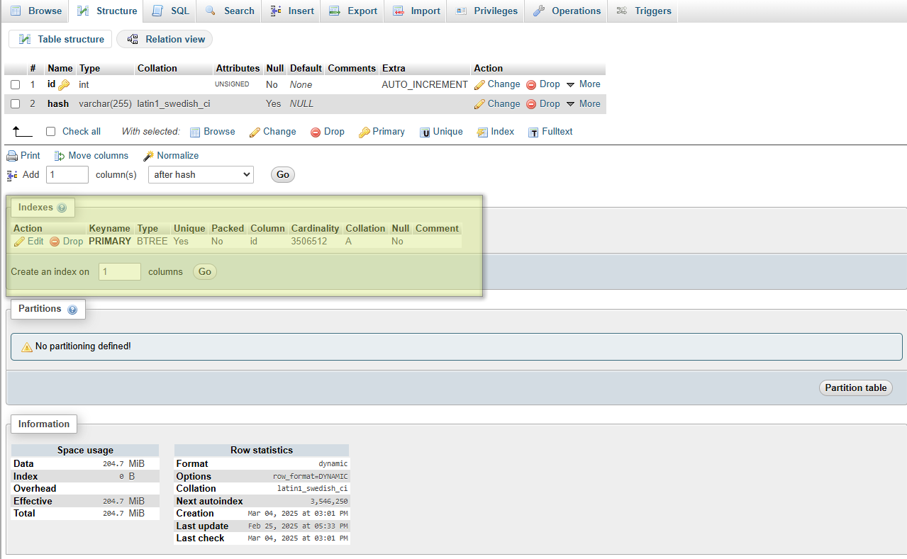 As we can see, we have ~3533441 rows. A full enumeration of such a table will take an unforgivably long time by the standards of working with a database.