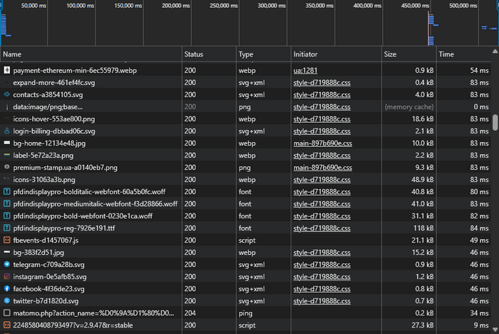 - Size — what loads the most in terms of transferred data size.