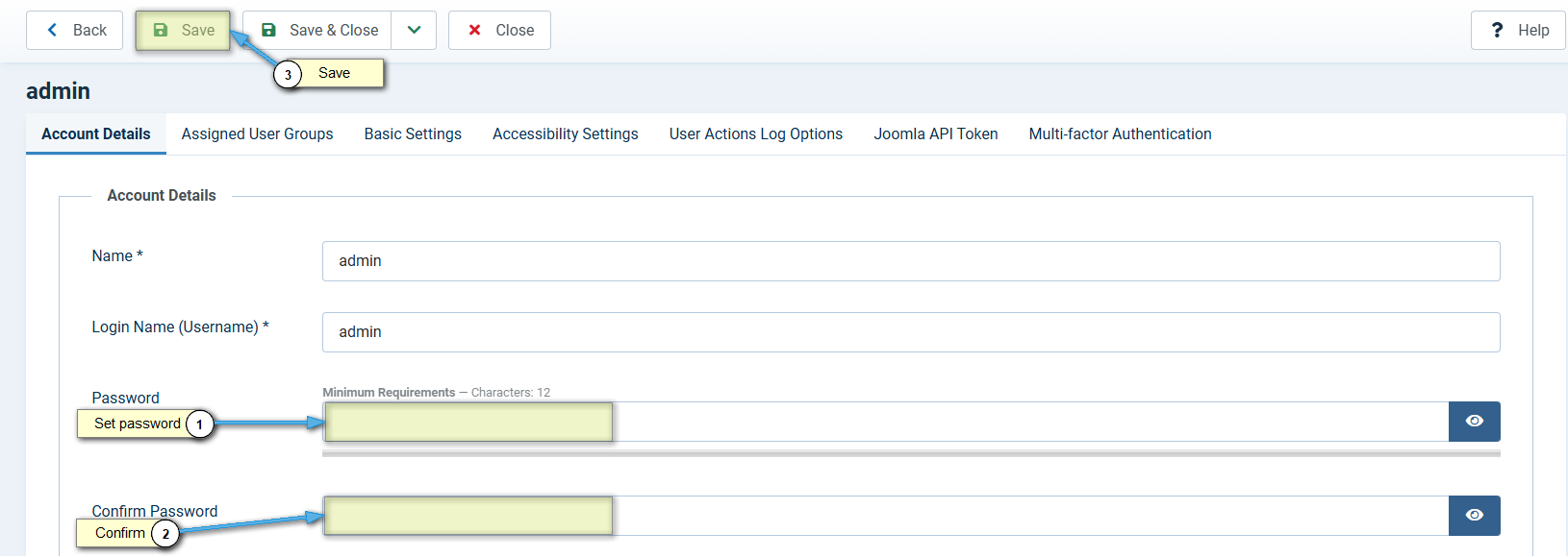 - After logging in, change the password to a long, unique value and enable 2-factor authentication (if the module is available).