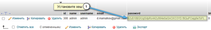 passwdна MD5-хэш из шага 2. - Сохраните изменения и войдите в административную панель с новым паролем.